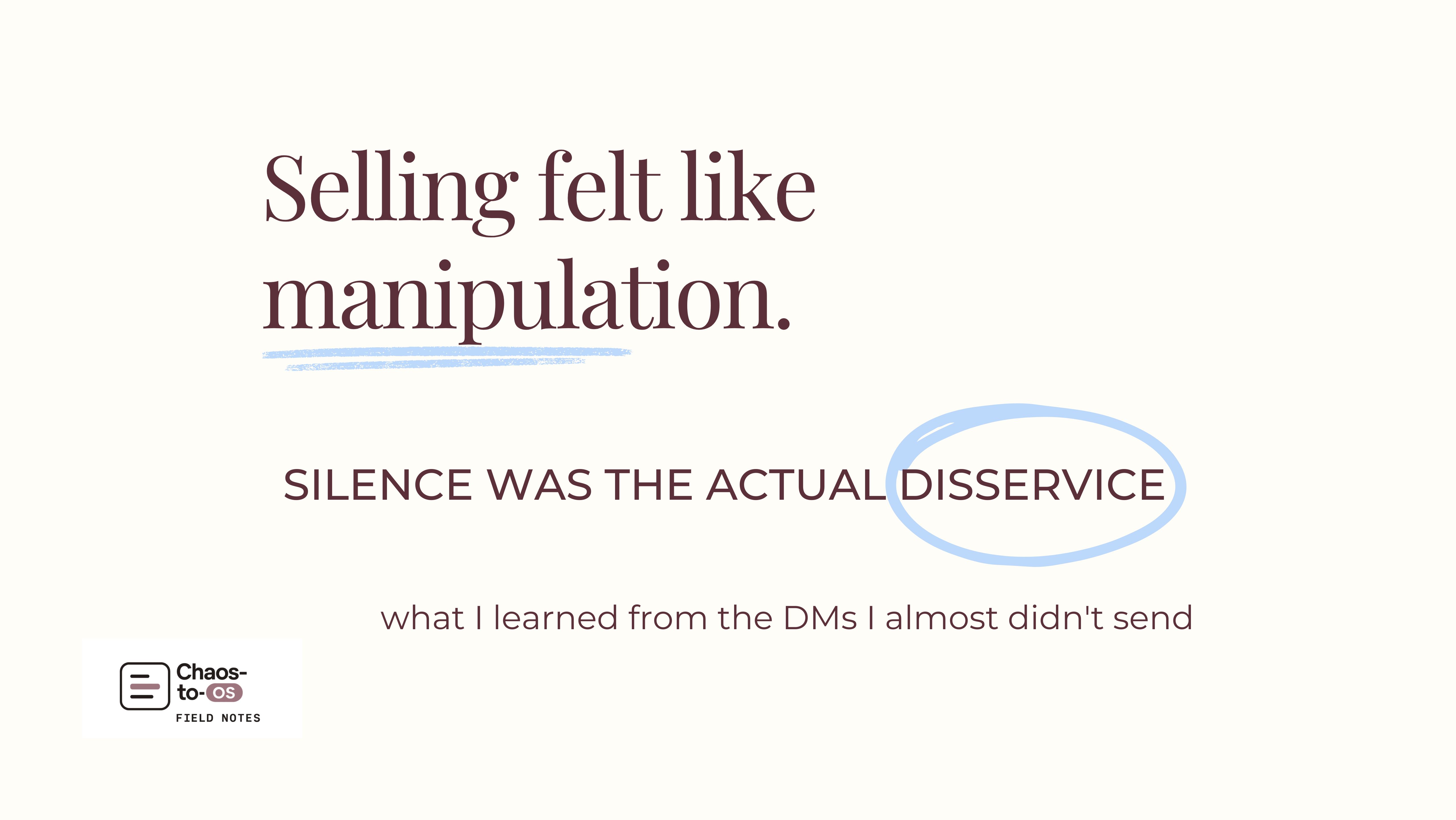 But here's what I got wrong: I thought staying on the marketing side meant I didn't need the sales muscle at all. And that cost me. Not dramatically — I wasn't in crisis. But slowly, in the way that things cost you when you don't notice them for years. Opportunities I didn't pursue. Conversations I didn't start. People who could have used exactly what I offer... who never heard from me because I was waiting for them to come to me.